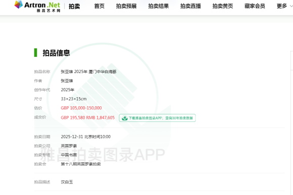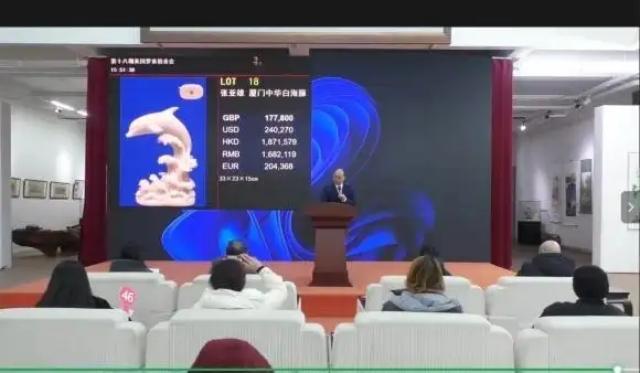张亚雄作品《厦门中华白海豚》在英国罗素拍卖公司以184万人民币落锤成交