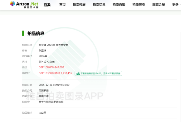 李建辉(李翰)作品在英国罗素拍卖公司落锤成交