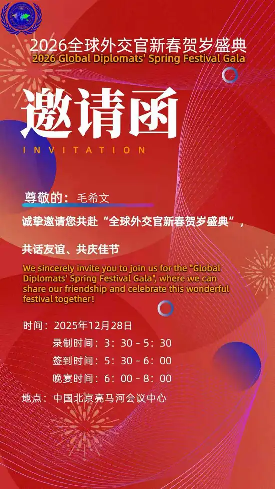 笔墨山水架友谊之桥 —— 毛希文亮相 2026 全球外交官新春贺岁盛典