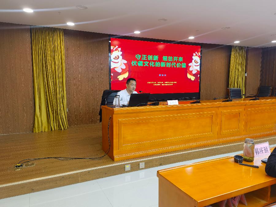 伏羲文化专家黄艳生为微山县宣传思想文化培训班授课