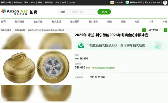米兰-科尔蒂纳2026年冬奥会纪念银冰壶落锤成交!