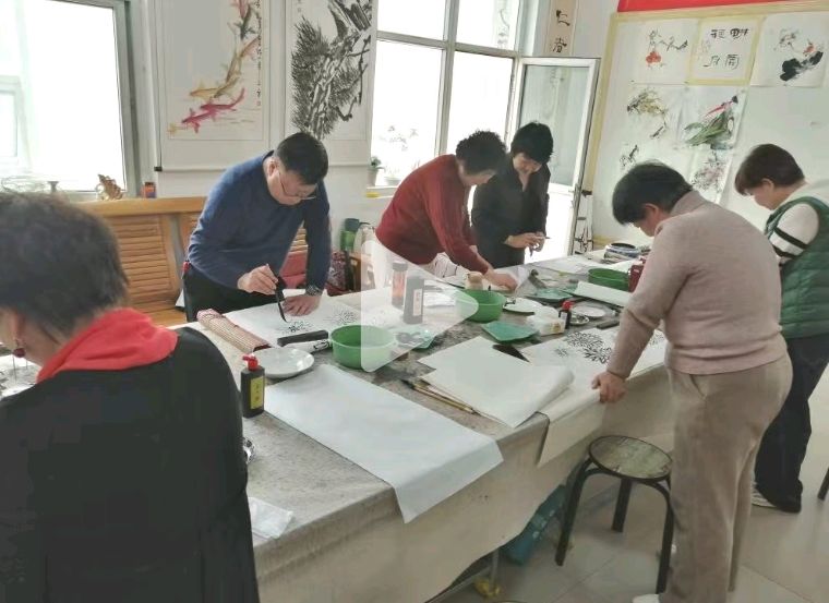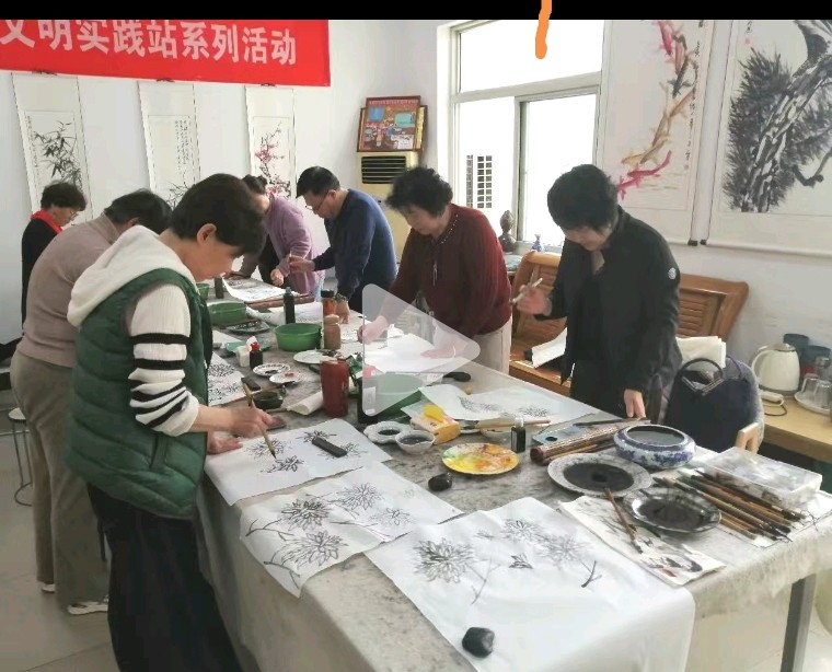 塔前社区国画公益课开课啦!墨香里的春日雅集