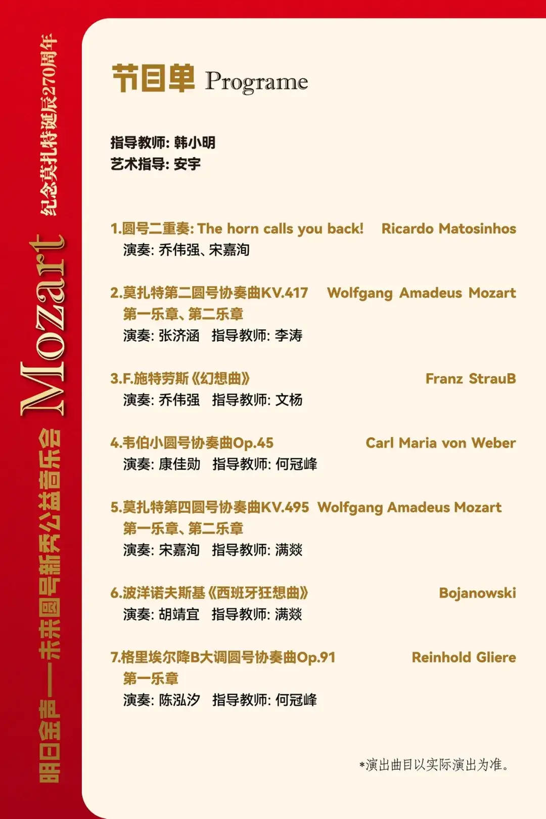 明日金声 —— 未来圆号新秀公益音乐会暨录取名单公布