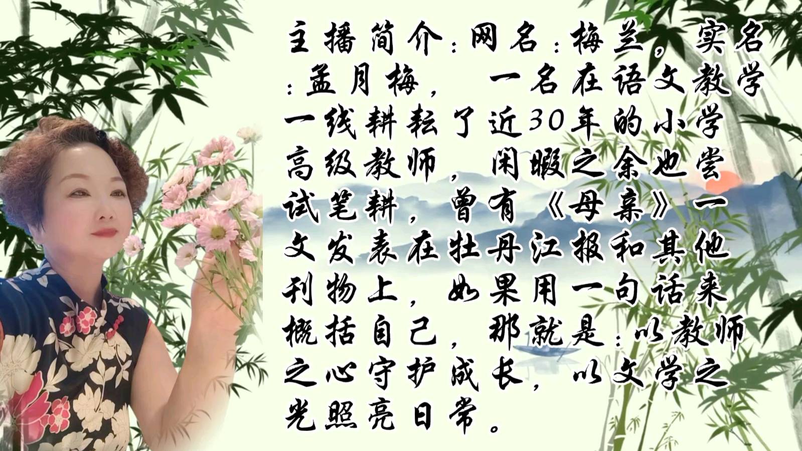 诗书小屋文学社《如果有来生,下辈子还做您的女儿》!作者.诵读:梅兰;编制:陈富。