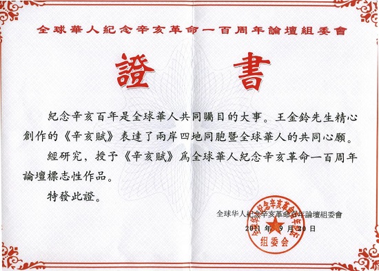 以赋颂史 古今同辉——读王金铃先生创作的《辛亥赋》有感