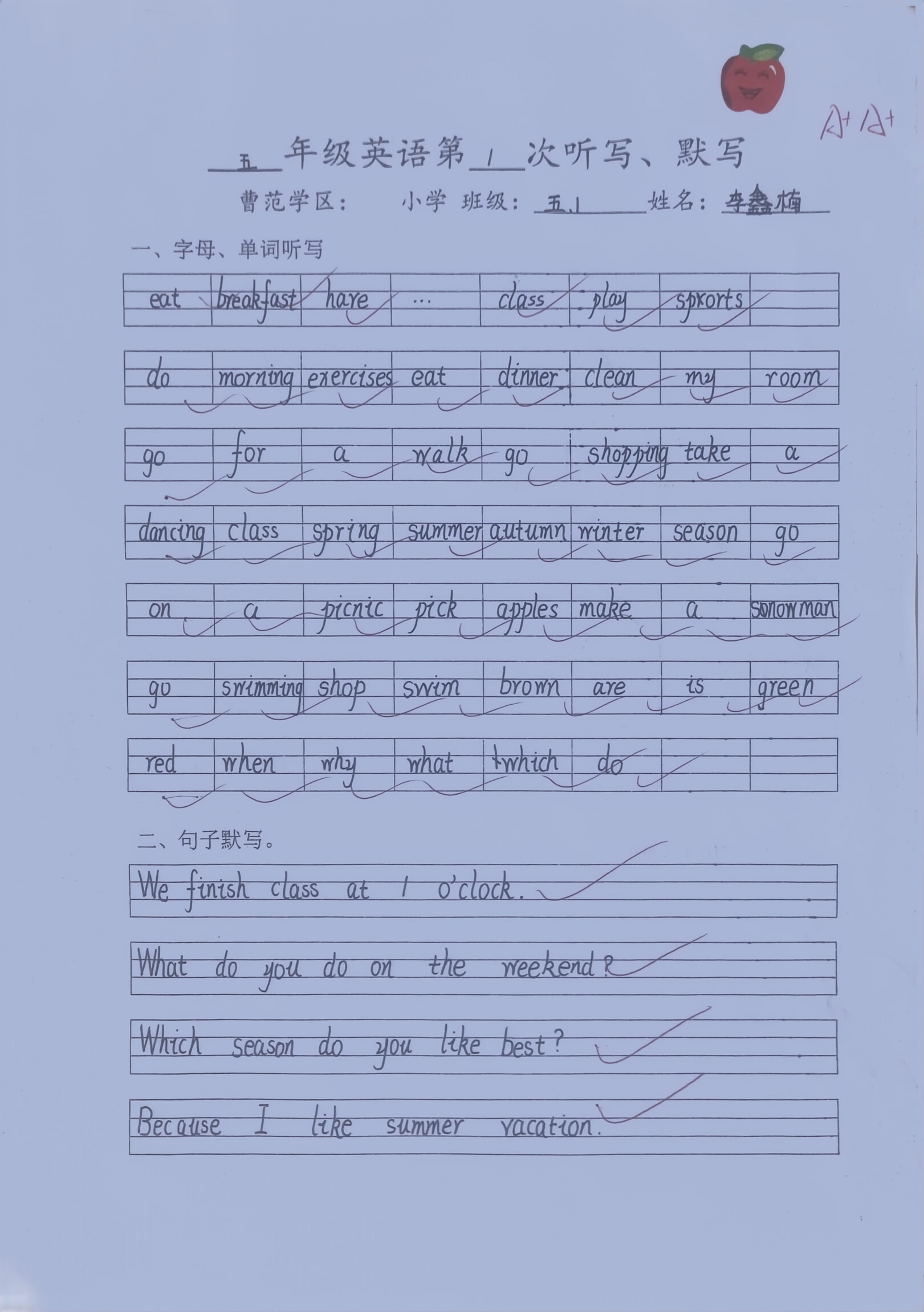 “笔触星空,墨舞英文” 章丘区曹范学区中心小学五年级第一次英语听写比赛