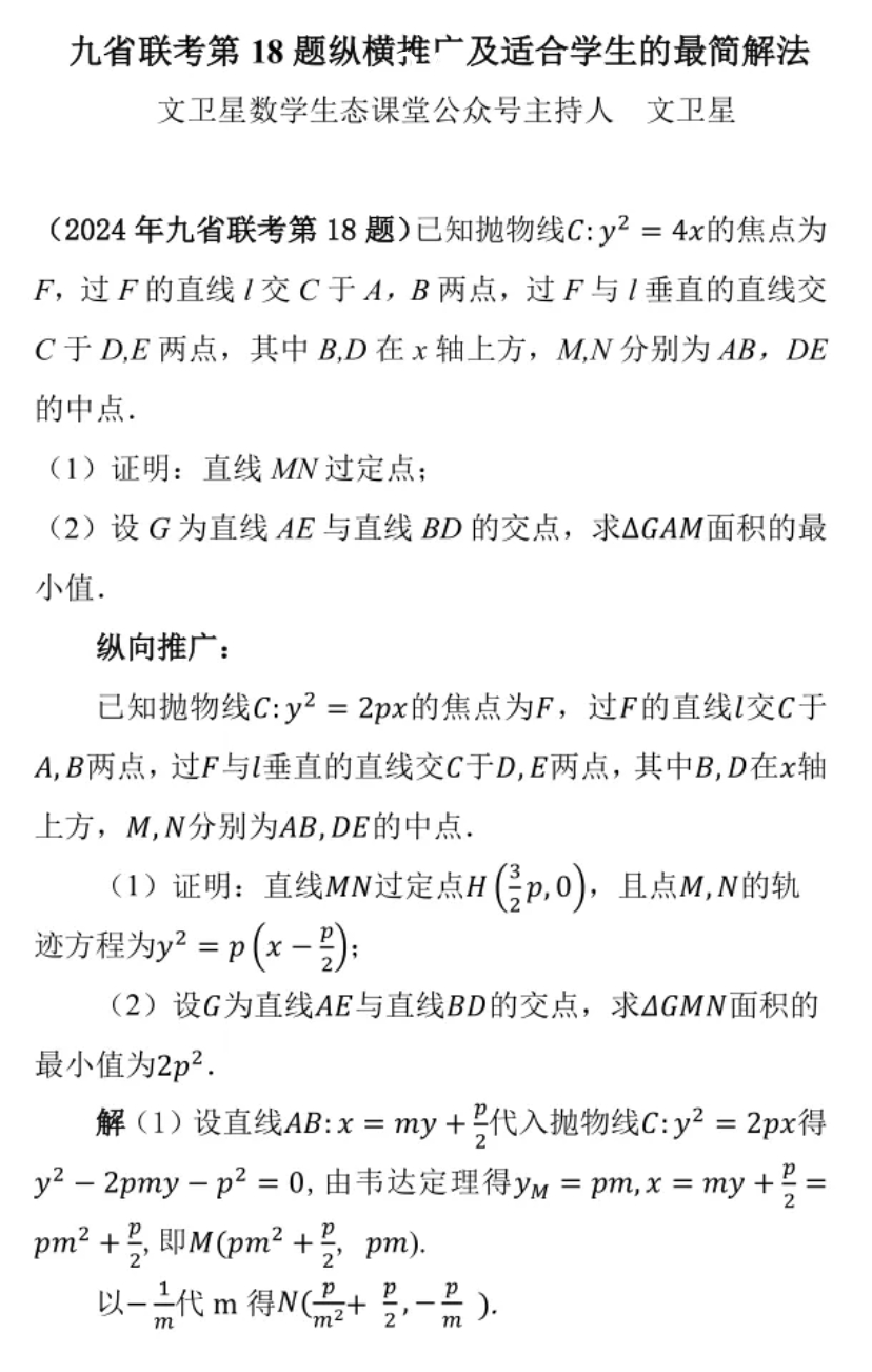 上海特级教师文卫星:纵横贯通,举一反三——九省联考第18题纵横推广及适合学生的最简解法