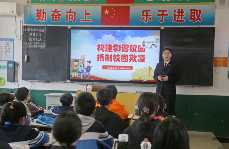 「向校园欺凌勇于说不」邯郸鸡泽:防范校园欺凌法治课在国旗下开讲
