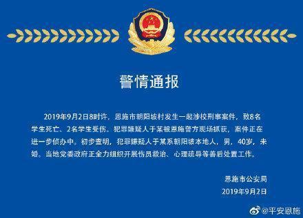 湖北:恩施发生致8名学生死亡2名学生受伤涉校刑事案件
