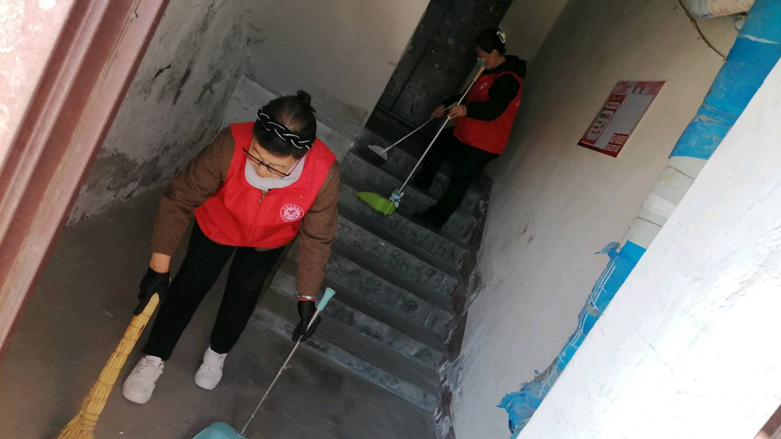 志愿清扫楼道 共建舒心家园