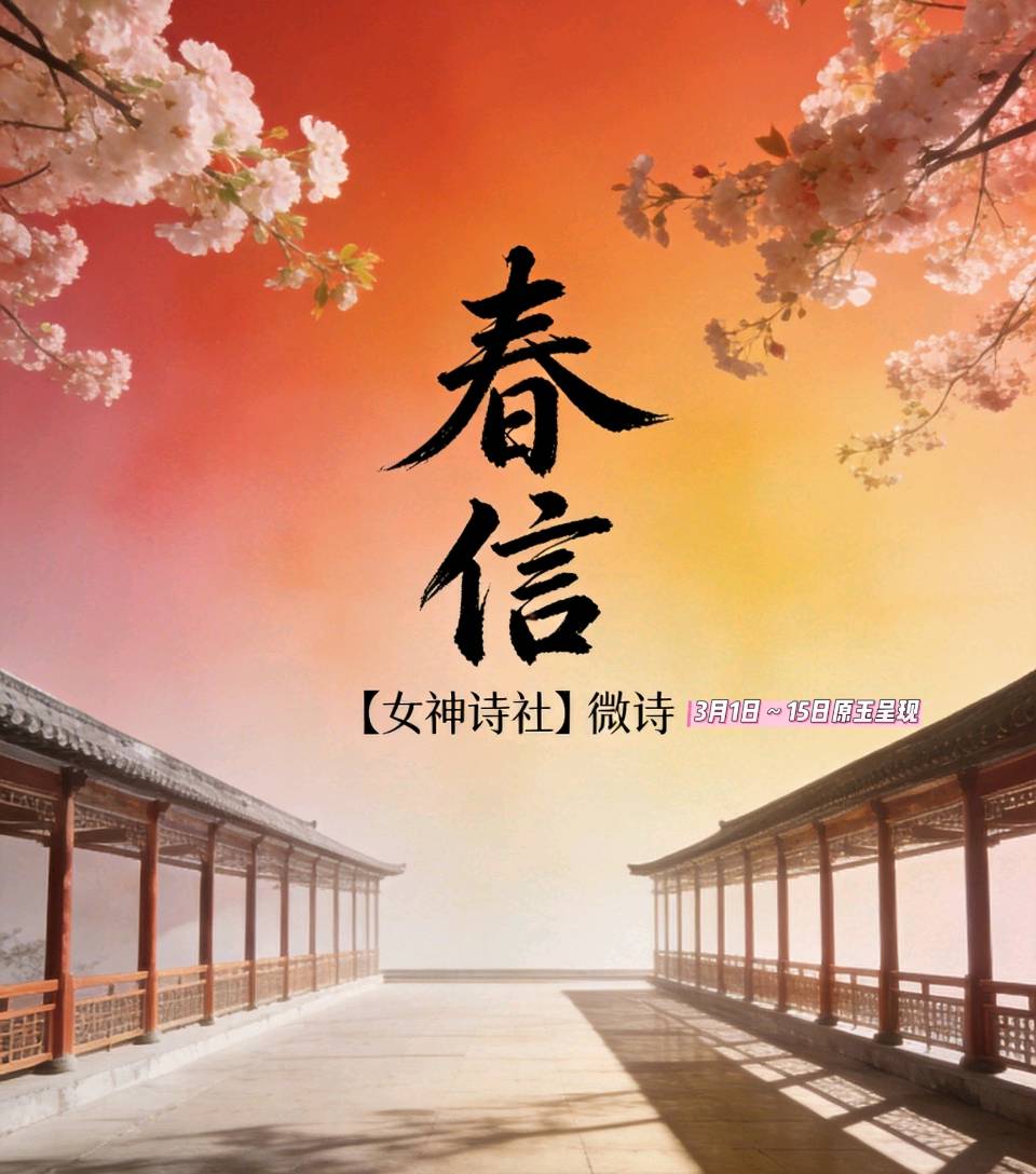 【隆重推出】3月1日~15日《女神诗社》微诗获奖作品及原玉呈现 一等奖:周振杰 二等奖:清雅如兰 三等奖:老马识图/铁炎 优秀奖:蒲怀安/拷水 收稿:铁炎