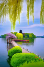 柯善北《江滩石凳候君来,春风又绿武昌岸》