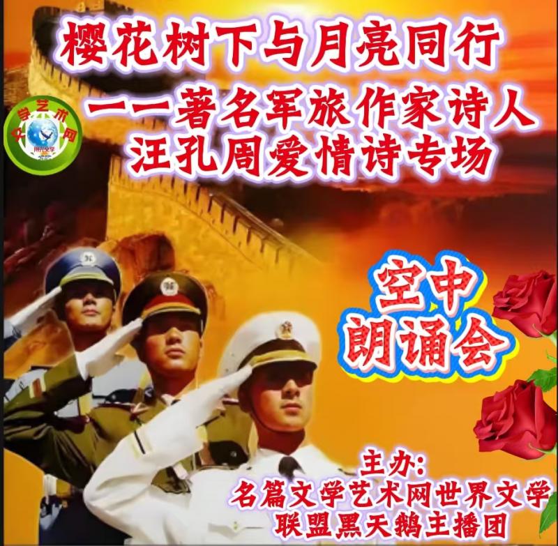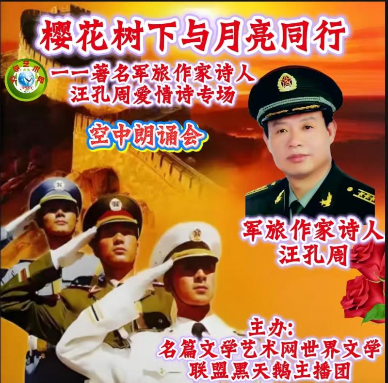 世界文学联盟//樱花树下与月亮同行//著名军旅作家诗人汪孔周爱情诗专场//主办:世界文学联盟黑天鹅主播团//主编:张淑媛 总编:李淑林