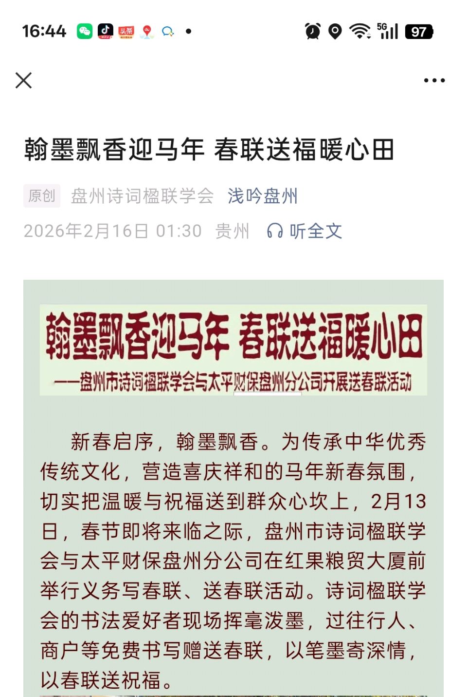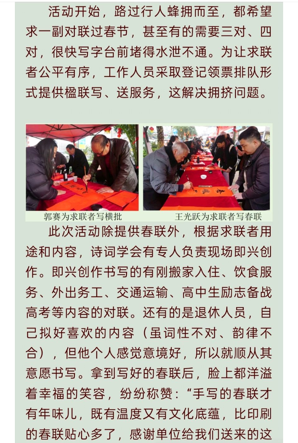 翰墨飘香迎马年 春联送福暖心田