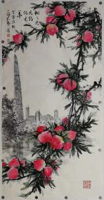尹玉峰为深圳市委某局调研员粱嘉伟《桃之夭夭》大作欣题元曲一首