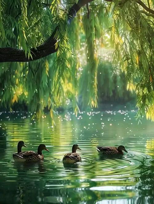 高金秀:湖畔青柳,一湖蓝韵