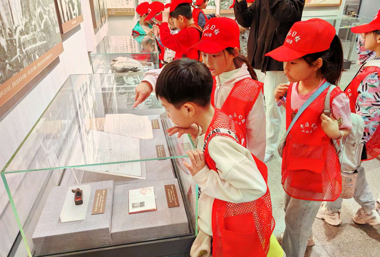 滕州市官桥镇轩辕小学小记者走进铁道游击队纪念馆,接受爱国主义教育