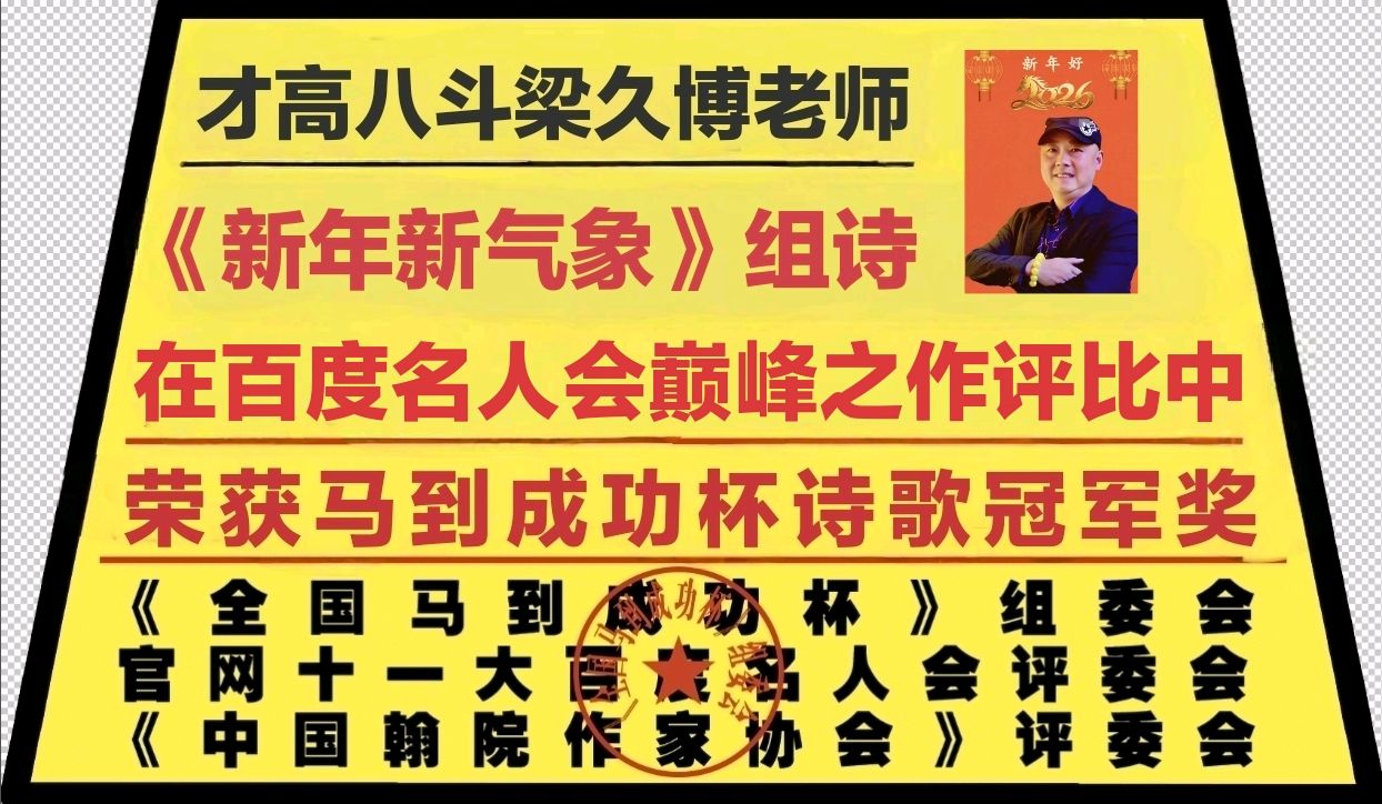 『新年特刊』——百度名人梁久博马到成功杯冠军代表作《新年新气象》组诗展博