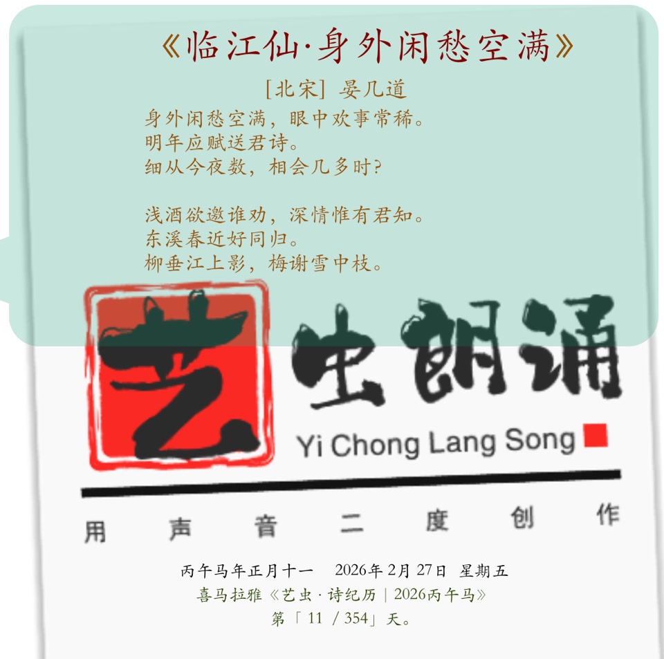 丙午马11.艺虫日读古诗词《临江仙·身外闲愁空满》 [北宋] 晏几道