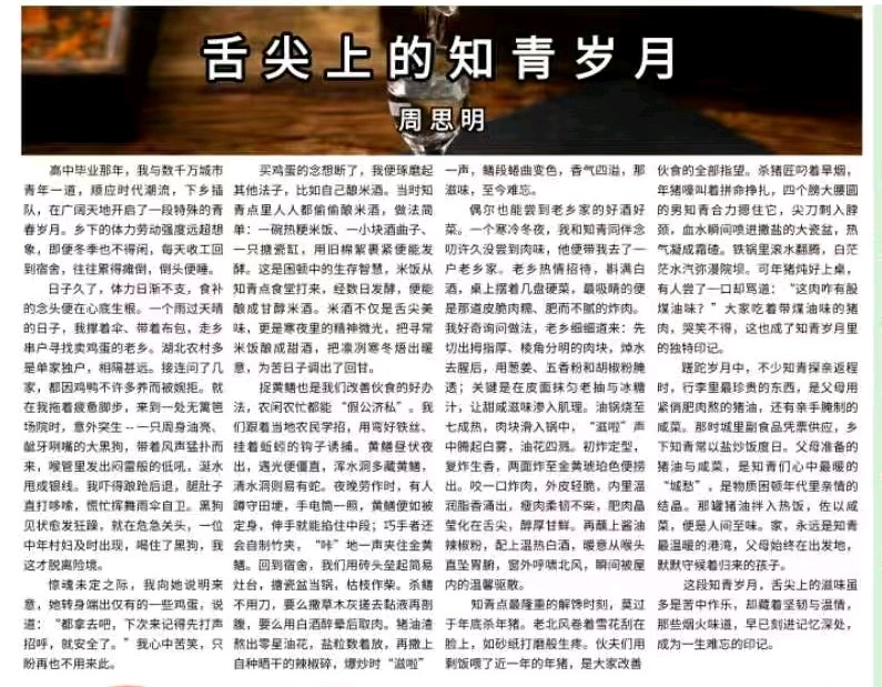 作者:周思明《舌尖上的知青岁月》18371期~新京都文艺