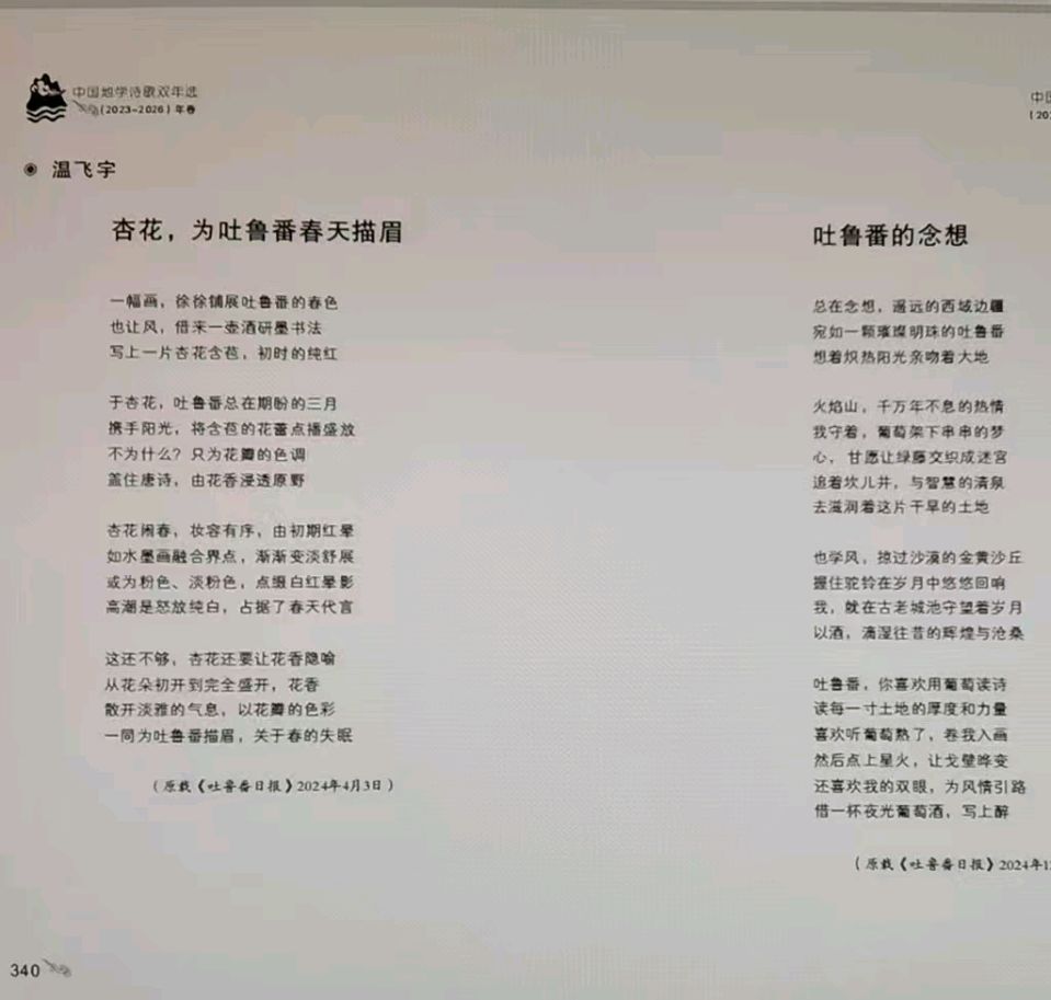 温飞宇两首吐鲁番诗作入选国家级选本《中国地学诗歌双年选》