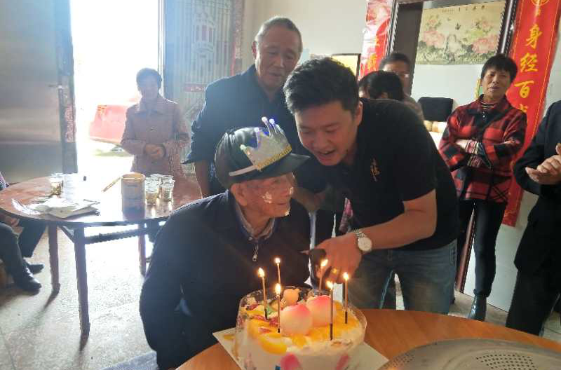 敬礼!湘乡志愿者陪抗战老兵过幸福生日会