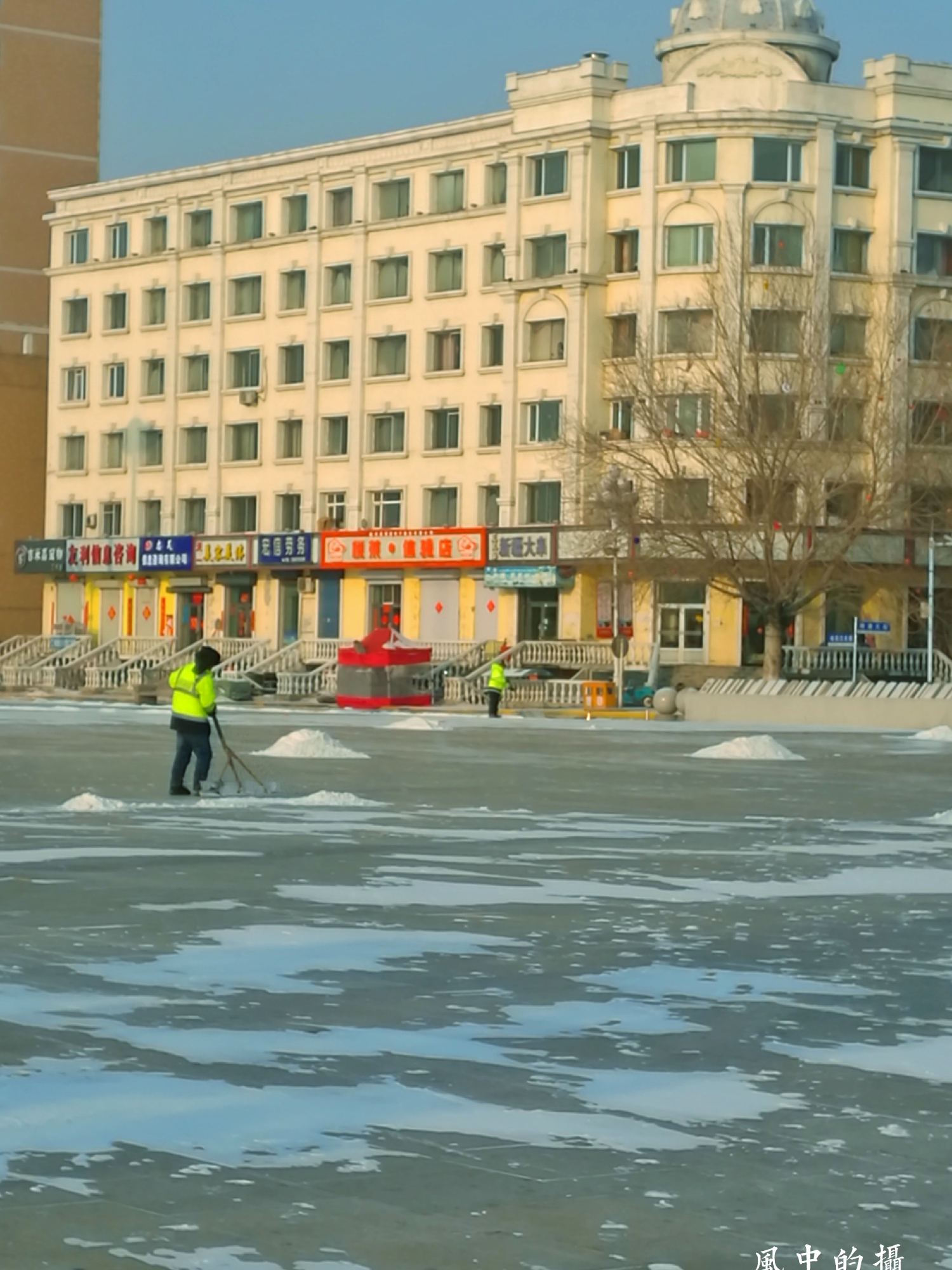 通河的环卫工人,新春佳节之际环卫工人仍然顶风冒雪在路上坚守岗位