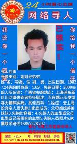 广西柳州姐姐韦周吉寻找失踪弟弟韦强