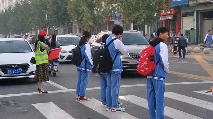 洒向学生都是爱——河南省许昌市第一中学八(7)班家长志愿者清晨护岗剪影