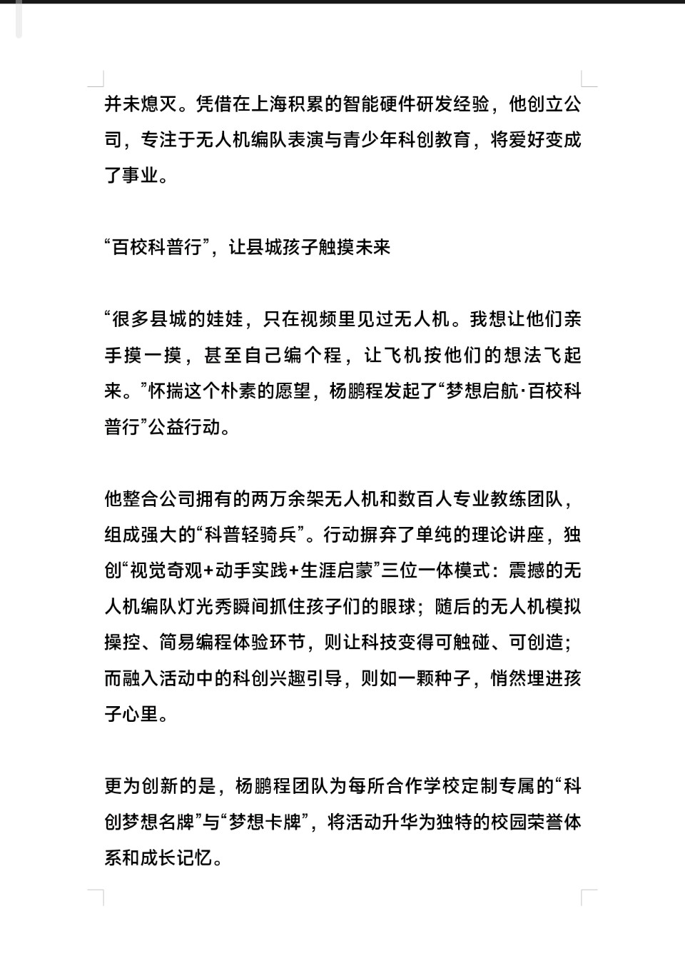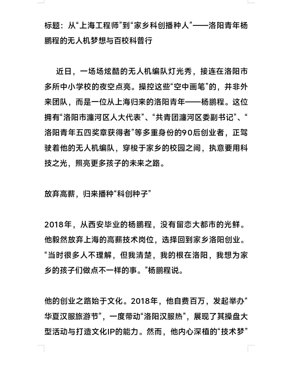 洛阳青年杨鹏程的无人机梦想与百校科普行