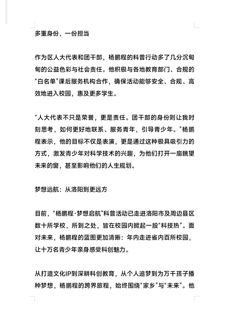 “梦想领航”全国公益行动,洛阳青年杨鹏程,点燃百万青少年科创梦想