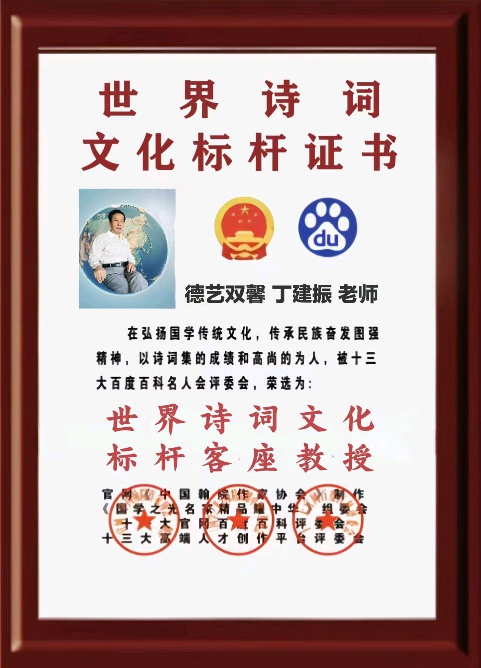 『隆重推出楷模人物』世界诗词文化标杆客座教授丁建振书写『《清明节吟怀》格律诗二十首五绝.清明祭专刊载入史册作品展』『世界文学总会』热播中!