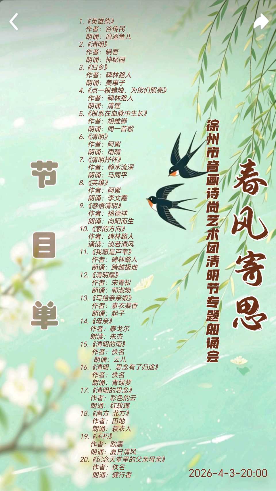 【春风寄思】~徐州市音画诗尚艺术团清明专题朗诵会