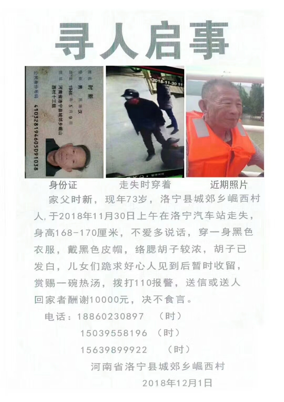 洛阳头条寻人:洛宁县崛西村73岁老人走失,请朋友们都帮忙转发,希望早点找到老人