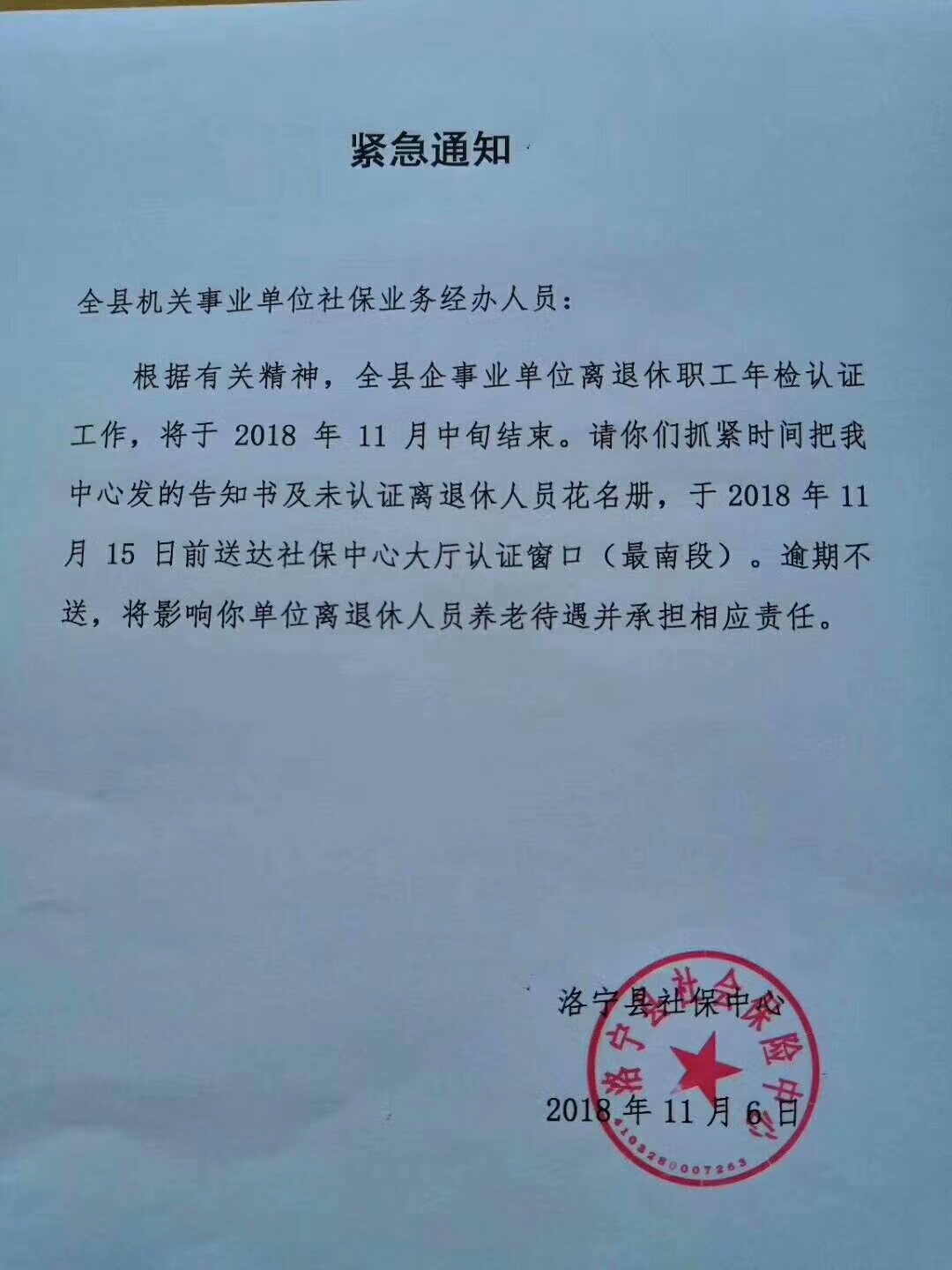 洛宁县企事业单位离退休职工年检认证通知