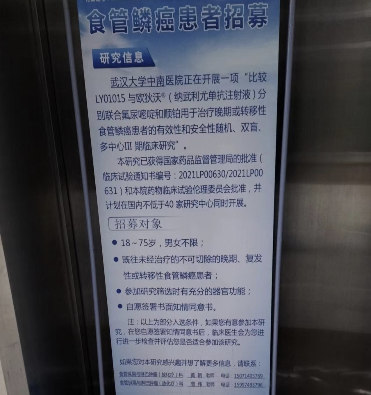 武汉市中南医院招募“食道鳞癌患者”