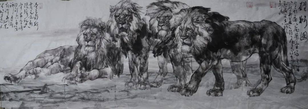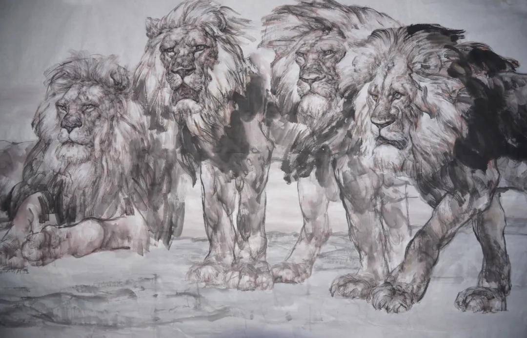 试论王阔海先生雄狮图之意笔写实文/玄石翁