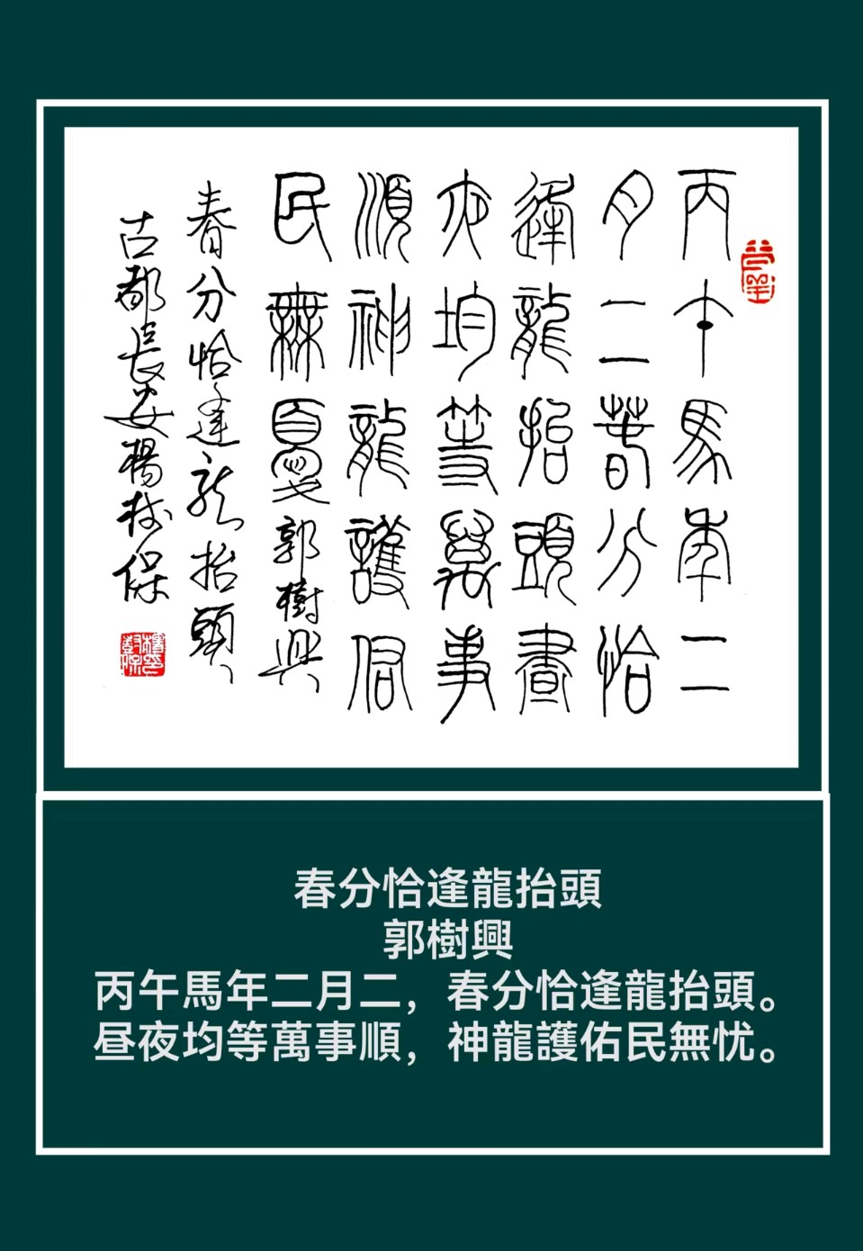 【长安诗文第2606期•古风】丹舟/春分恰逢龙抬头(美书法)