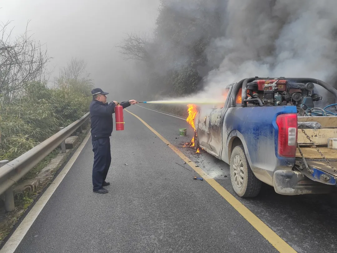 桐梓公安:车辆自燃,民警紧急救援