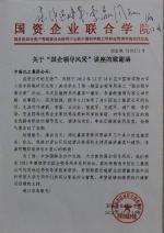 关于“国企领导风采”讲座的致谢函 作者/叶建华
