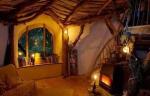 《东方仙境绮梦:水墨鎏金晨,瀑畔木屋藏诗韵》