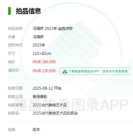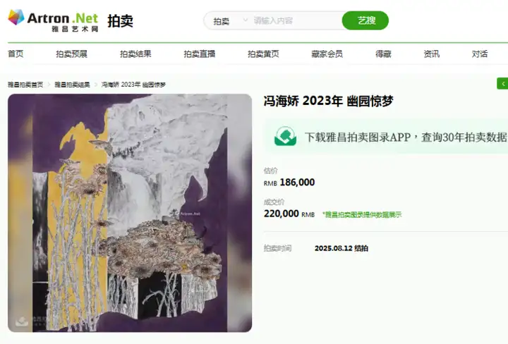 画家冯海娇山水作品2025年被成功拍出高价!