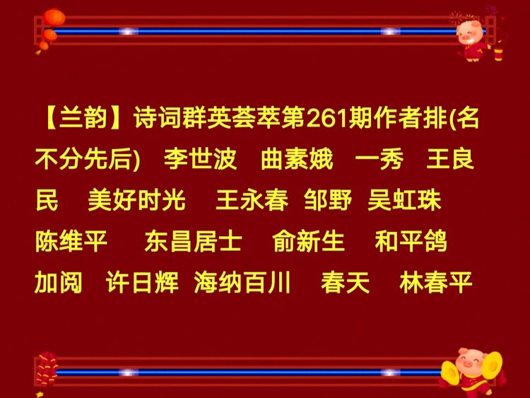 【兰韵】诗词群英荟萃第261期词楹联绝句篇