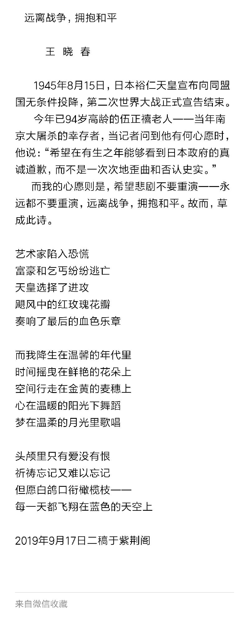 【河子文艺之声】远离战争,拥抱和平/作者:王晓春 主播:张文玲 总编:楚成阳
