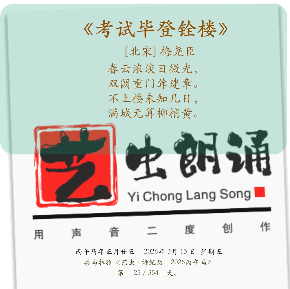 丙午25.艺虫日诵/认证金牌主播《考试毕登铨楼》[北宋] 梅尧臣