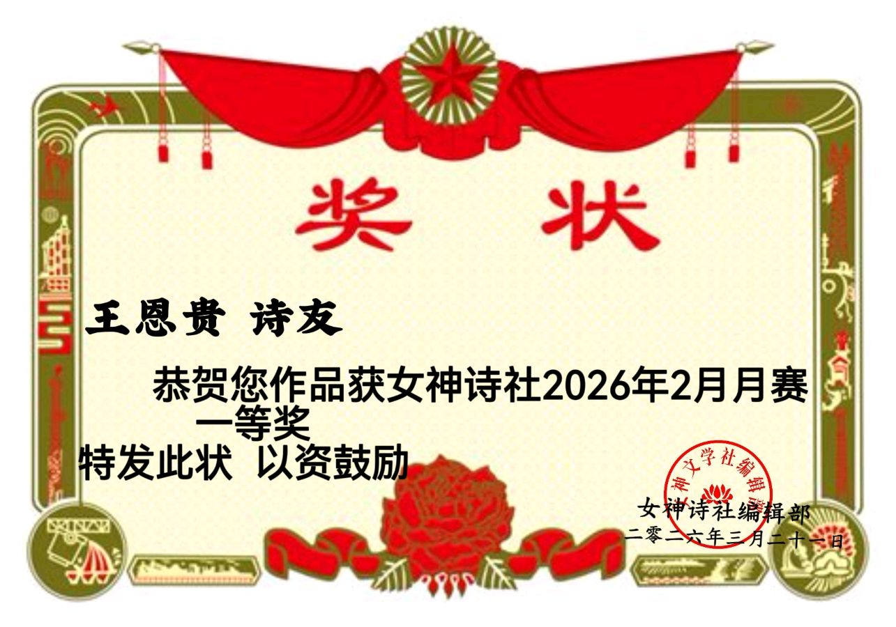 【隆重推出】2026.2月月赛获奖作品及原玉呈现 一等奖:王恩贵二等奖:方向 三等奖:周静伟 优秀奖:指染青岚/夏禾/方向 制作:一米阳光