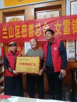 兰山区慈善总会女雷锋志愿服务团团长李小鲁一行到莒南县为爱心人士颁发捐赠奖牌和证书 文‖韩广华 摄影‖陈爱平