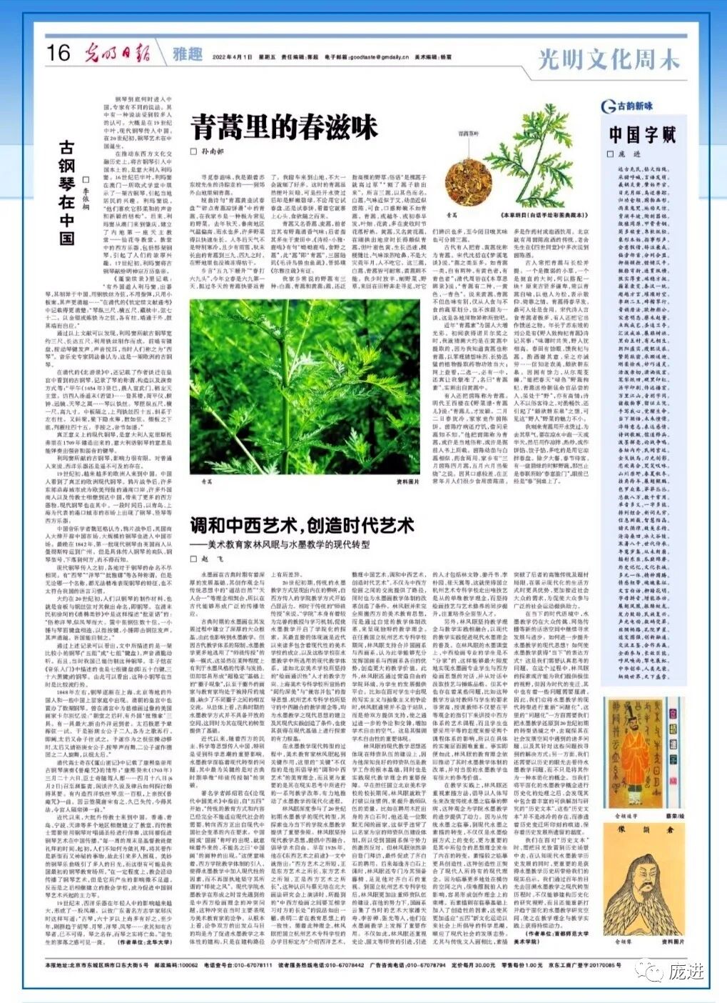 中国字赋 (庞进 光明日报2022年4月1日16版首发;增改再发)