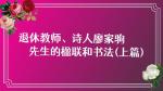 【一位退休教师、诗人廖家驹先生的楹联和书法】(上篇)