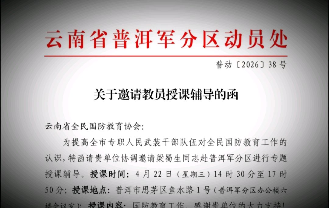 普洱军分区:邀请专家宣讲国防教育